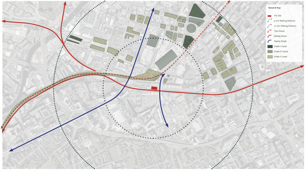 Located next to Deansgate Locks and close to the Rochdale Canal, the site is within easy reach of the University of Manchester, Manchester Metropolitan University, and two of the city’s busiest train stations: Oxford Road and Deansgate.
